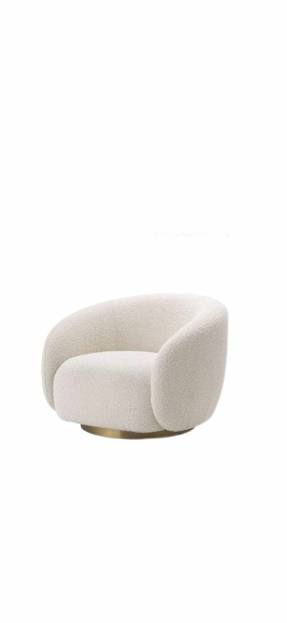 Кресло "Simply" - Поворачивайтесь и расслабляйтесь по своему усмотрению на стуле "Simply", идеальном дополнении к Вашему жизненному пространству. Уютное и современное, это элегантно изогнутое поворотное кресло имеет стильную ткань букле кремового цвета и матовое латунное поворотное основание. Объедините его с диваном "Simply" для полного внешнего вида. Размеры: Ширина - 80 см. Глубина - 82 см. Высота - 70 см. Материал кресла: Натуральная ткань растительного происхождения, с добавлением синтетического "Букле" Материал наполнителя: Упругая губка высокой плотности